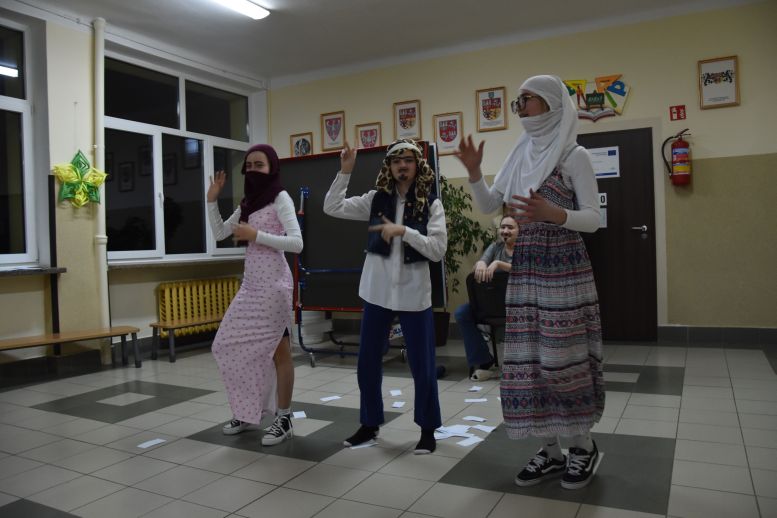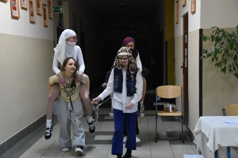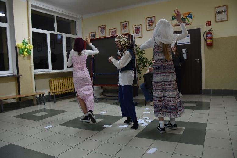 Biwak z „Małym Księciem” W piątek 30 stycznia 2026 r., zaraz po zakończeniu I półrocza, 17 uczniów naszej szkoły – harcerzy i kandydatów na harcerzy, przyszło do szkoły, by uczestniczyć w biwaku harcerskim i nocowaniu w szkole (jak widać, niektórzy nie mogą się rozstać ze swoją kochaną szkołą, nawet gdy już mają wolne od zajęć lekcyjnych). Dołączyła do nas także druhna Kaja, która miesiąc wcześniej przeniosła się do szkoły we Wrocance. Gdy już wszystkie zastępy rozlokowały się w przydzielonych im klasach i przygotowały swoje miejsca noclegowe na materacach przyniesionych z sali gimnastycznej, punktualnie o godzinie 20:00 Druh Drużynowy wezwał wszystkich przenikliwym głosem gwizdka na apel rozpoczynający biwak. Po krótkiej musztrze Druh omówił zasady bezpieczeństwa obowiązujące tej nocy i przedstawił plan biwaku. Następnie zastępy dostały półtorej godziny na przygotowanie prezentacji wybranych przez siebie krajów. Większość materiałów harcerze opracowali wcześniej podczas zajęć pozalekcyjnych, zatem przygotowanie się do występu przed całą drużyną poszło wszystkim dość sprawnie. Najpierw zaprezentowany został kraj z Ameryki Północnej – Meksyk. Druhny przedstawiły godło, flagę i hymn oraz przedmioty i obiekty charakterystyczne dla tego kraju, umieszczone na mapie konturowej. Zaprezentowały też oryginalny taniec do muzyki meksykańskiej. Drugi zastęp zapoznał wszystkich z kulturą kraju azjatyckiego – Turcji. Najpierw na scenę wkroczył szejk z dwiema żonami jadącymi na wielbłądach, potem druhny zaprezentowały taniec arabski i przedstawiły ciekawostki o Turcji. Choć mapa tego kraju została przedstawiona do góry nogami, zebrana widownia nagrodziła występ gromkimi brawami. Ostatnim prezentowanym krajem były Niemcy – kraj z Europy Zachodniej. Harcerze „wjechali” na scenę czarnym Volkswagenem, jeden z druhów wystąpił w krótkich spodenkach na szelkach, popijając złocisty sok jabłkowy z wielkiego kufla. Zaprezentowane zostały godło i flaga Niemiec oraz najbardziej charakterystyczny budynek niemieckiej stolicy Belina, jakim jest Brama Brandenburska. Nie zabrakło też niemieckiego tańca i częstowania widowni preclami. Ten występ również, jak obydwa wcześniejsze, bardzo się wszystkim spodobał. Było dużo śmiechu i dobrej zabawy. Kolejnym punktem programu było szukanie na terenie szkoły wskazówek i rozwiązywanie zagadek związanych z „Małym Księciem” (klasa VII) i z „Szatanem z siódmej klasy” (klasa VI). Zadanie było tym trudniejsze, że Druh Drużynowy nie udzielił harcerzom żadnych wskazówek, sami musieli się domyśleć, jak ułożyć sylaby w odpowiedniej kolejności, rozszyfrować je i wykonać zadanie. Przed północą harcerze w ciemnych korytarzach szkoły bawili się jeszcze w chowanego. Biwak zakończył się następnego dnia w sobotę 31 stycznia 2026 r. o świcie. Niewyspani, ale bardzo zadowoleni harcerze posprzątali swoje sale i wrócili do domów, by odespać tę noc pełną wrażeń i przebywania w gronie przyjaciół.