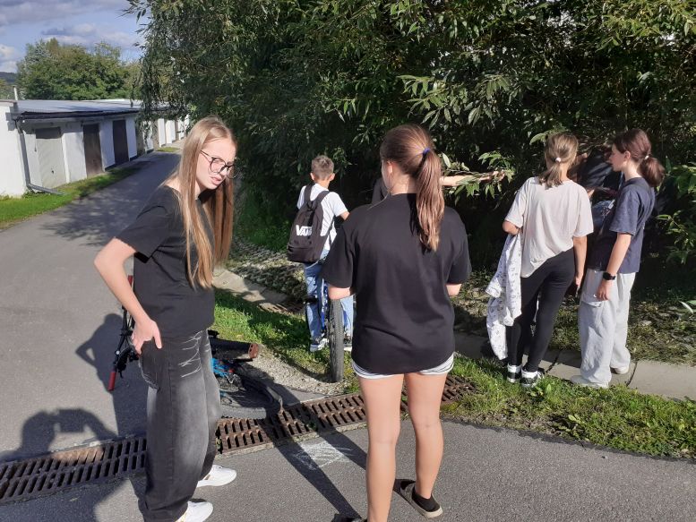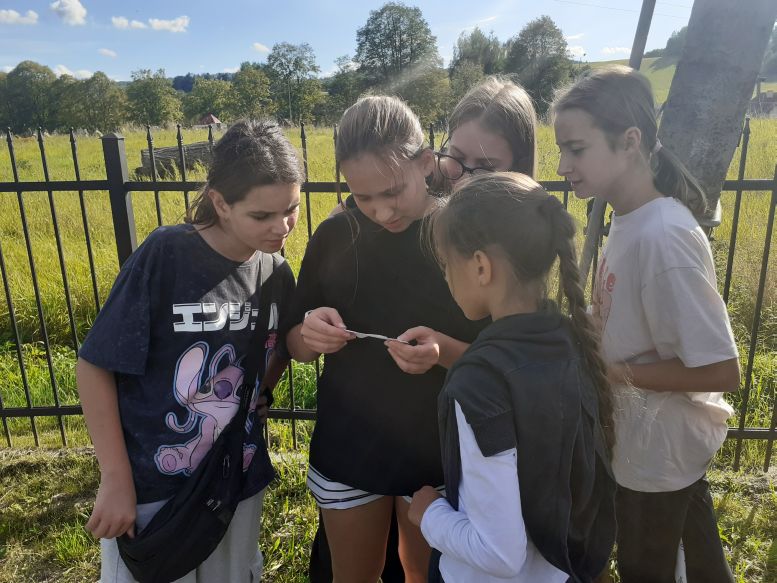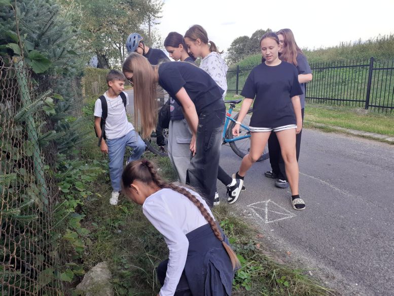 Zabawa w podchody W czwartek 18 września 2025 r., aby wykorzystać ostatnie słoneczne dni lata, harcerze z naszej drużyny zaproponowali Druhowi Drużynowemu zabawę w podchody, na co on bardzo chętnie się zgodził. Tym razem grupą uciekającą został zastęp „Iskry”, zaś po zostawianych przez nich śladach podążał zastęp „Atomówki”. Do obu grup dołączyli także chłopcy z ich klas oraz nowa kandydatka na zucha z klasy III. Grupa pierwsza pod opieką Pani Matematyczki najpierw udała się na osiedle, a potem wąskimi dróżkami biegnącymi przez Średnią Wieś dotarła do podnóża góry wznoszącej się nad naszą wioską, gdzie ukryli się w zaroślach. Tropiciele, oprócz odnajdywania znaków patrolowych, musieli także rozwiązywać zadania zapisane w licznych wiadomościach ukrytych po drodze. Nie wszystkie listy udało się odnaleźć, jednak te znalezione nie sprawiły „Atomówkom” żadnego problemu. Po odnalezieniu kryjówki „Iskier” i zrobieniu sobie wspólnych zdjęć, udaliśmy się na ostatnie w tym roku lody fundowane przez Druha Drużynowego.