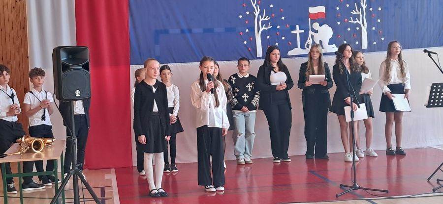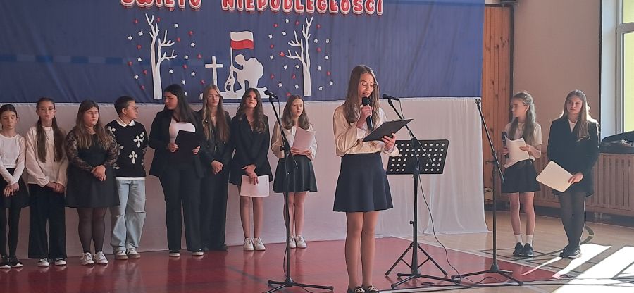 Po występach młodszych uczniów przyszedł czas na program artystyczny przygotowany przez starsze klasy. Ta część akademii była bardziej refleksyjna i podniosła. Uczniowie zaprezentowali recytacje wybranych wierszy patriotycznych. Scenariusz przedstawienia przybliżał wydarzenia historyczne z końca XIX wieku i początku XX wieku, kiedy Polska, po 123 latach niewoli, odzyskała niepodległość. W tle wybrzmiewały znane pieśni narodowe, takie jak "Siwy Mundur", "W listopadzie", "Piechota", "Miejcie nadzieję", "Jest taki kraj" oraz "Marsz I Brygady", które poruszyły publiczność i wprowadziły ją w klimat zadumy. Tegoroczna akademia z okazji 11 listopada w Szkole Podstawowej w Średniej Wsi była piękną lekcją historii i patriotyzmu, która na długo zapadnie w pamięć uczestników. Dzięki takim uroczystościom młode pokolenie może lepiej zrozumieć, co znaczą słowa "wolność" i "niepodległość" oraz jak ważne jest pielęgnowanie pamięci o tych, którzy poświęcili życie dla naszej ojczyzny.