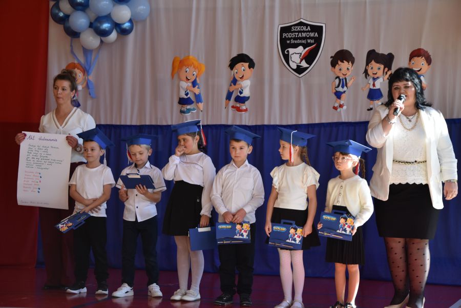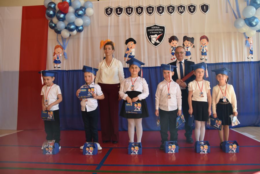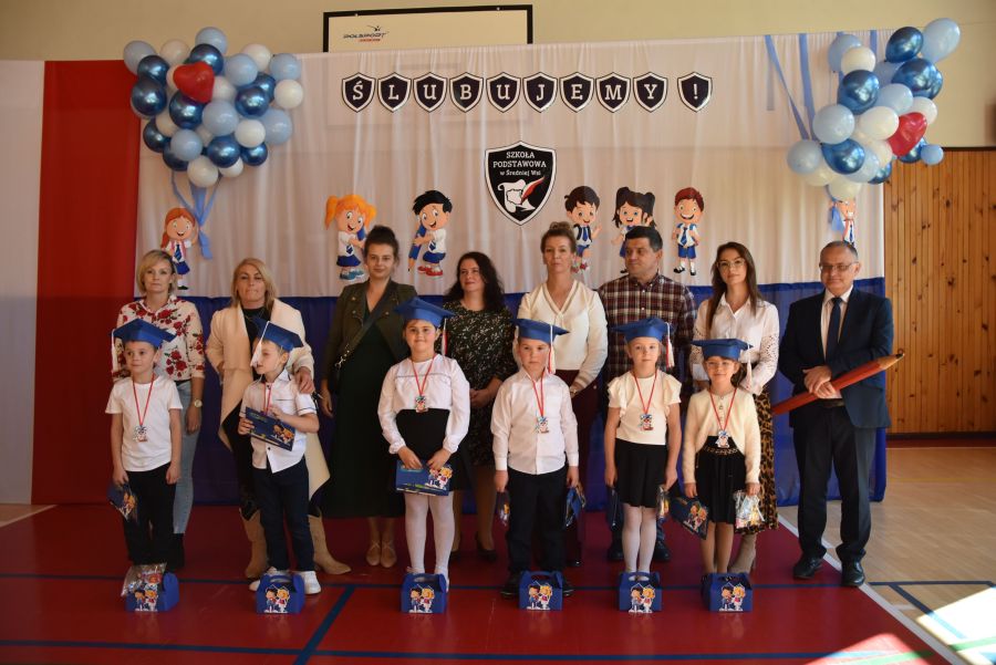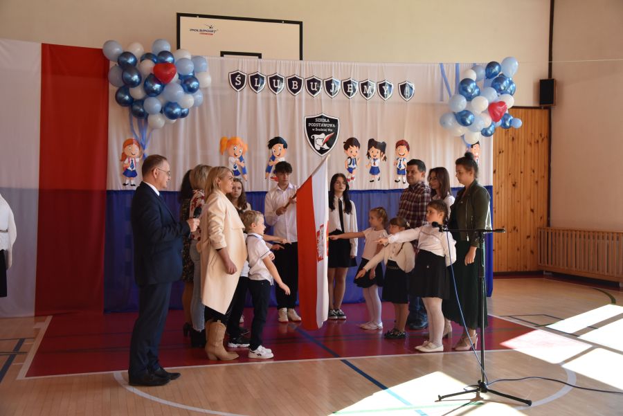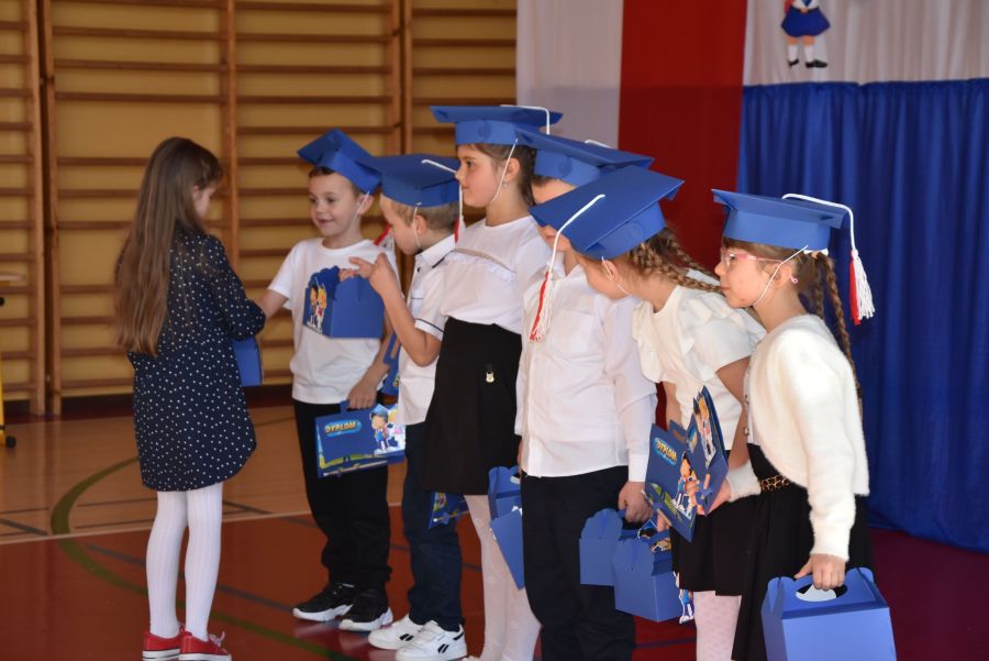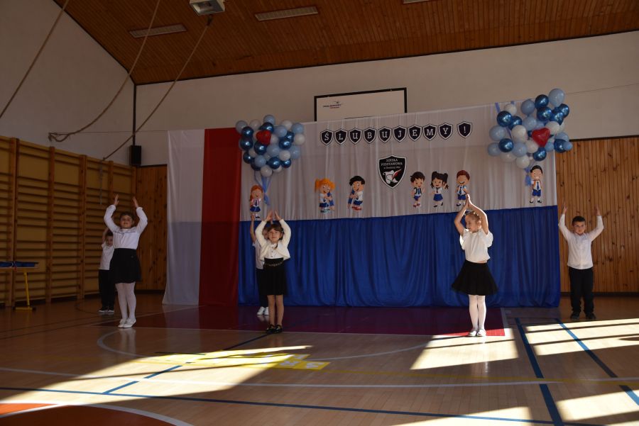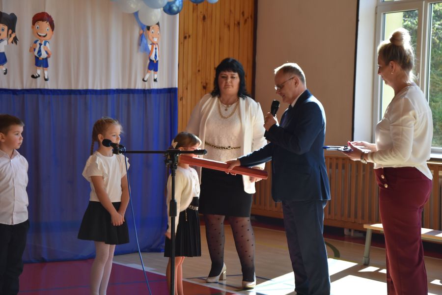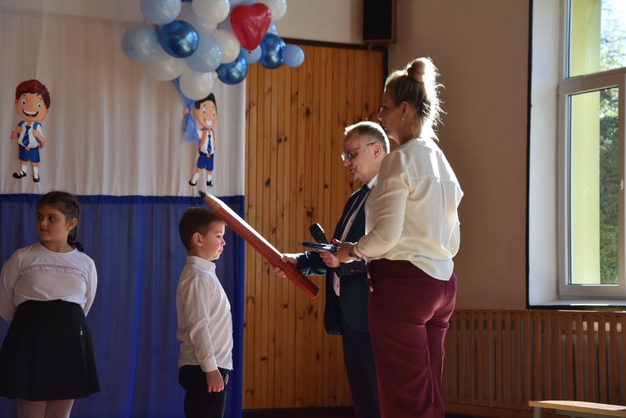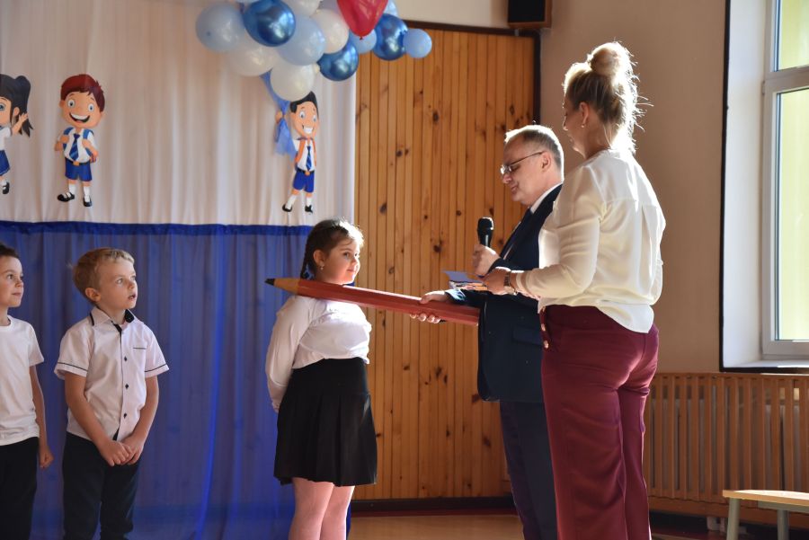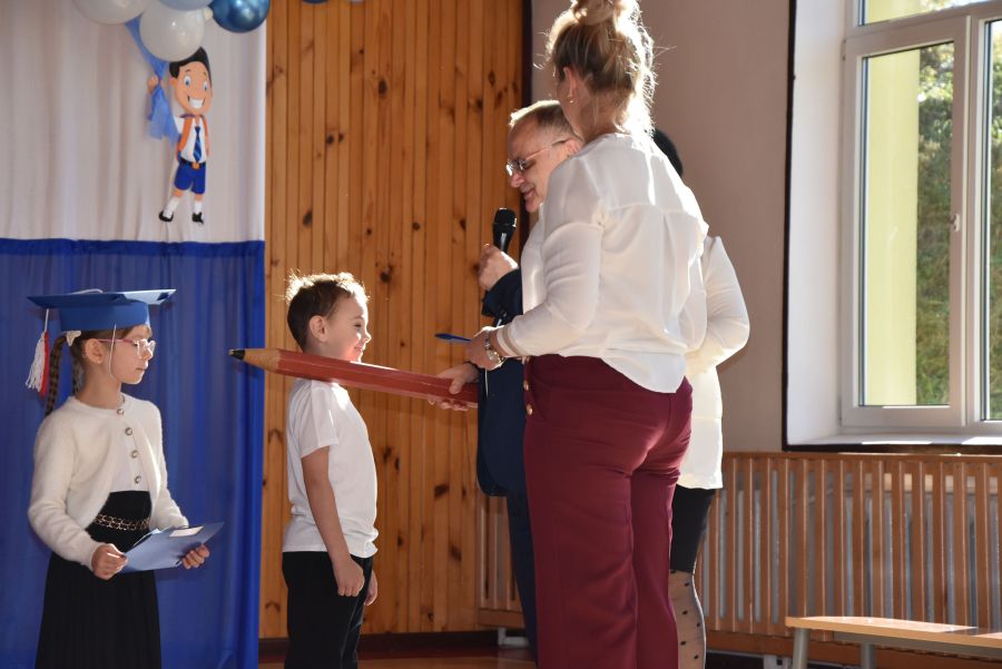 24 października 2024 r. odbyła się w naszej szkole Uroczystość Pasowania na Ucznia. Jest to szczególny dzień, który na długo pozostanie w pamięci każdego ucznia klasy pierwszej. W tym dniu dzieci oficjalnie przyjęte zostały do grona uczniów szkoły. Podczas uroczystości pierwszoklasiści pokazali, że potrafią recytować wiersze, pięknie śpiewać i tańczyć. Najważniejszą częścią uroczystości, na którą wszyscy czekali, było ślubowanie oraz pasowanie wielkim ołówkiem przez Pana Dyrektora Szkoły. Pierwszaki głośno i z przekonaniem ślubowały być dobrymi i pilnymi uczniami oraz rzetelnie wypełniać swoje obowiązki. Przysięgę złożyli również rodzice pierwszaków, którzy z pełną odpowiedzialnością ślubowali pomagać swoim dzieciom w pokonywaniu trudności, troszczyć się o nie i przytulać kiedy będą smutne. Wszystkim pierwszoklasistom życzymy wielu sukcesów na nowej drodze obowiązków szkolnych. Serdeczne podziękowania kierujemy do Rady Rodziców naszej szkoły i do klasy drugiej za miłe upominki. Dziękujemy Rodzicom uczniów klasy pierwszej za obecność, życzliwość i słodki poczęstunek.