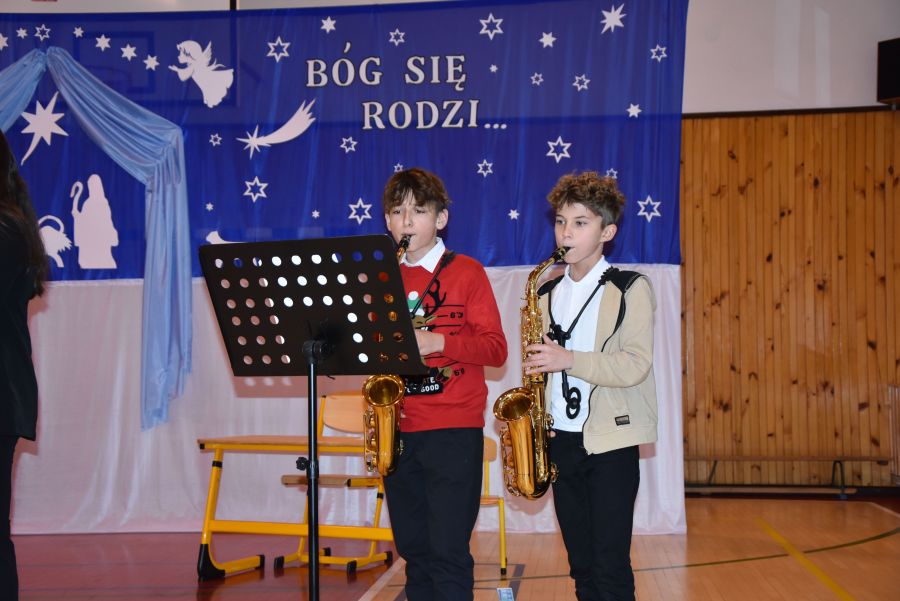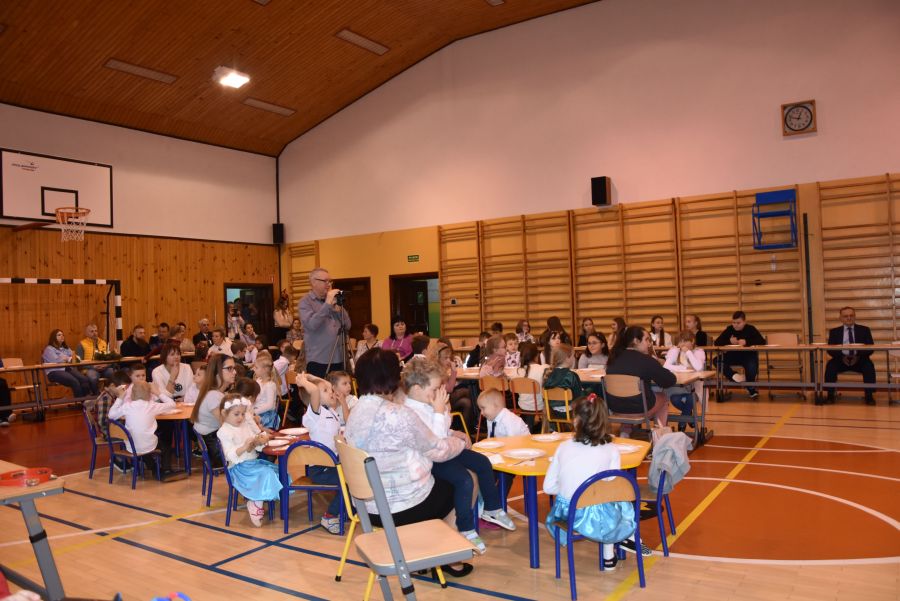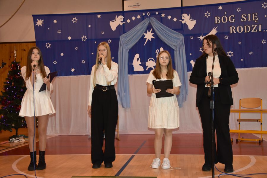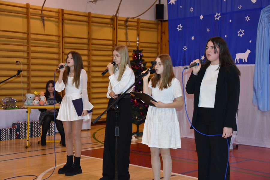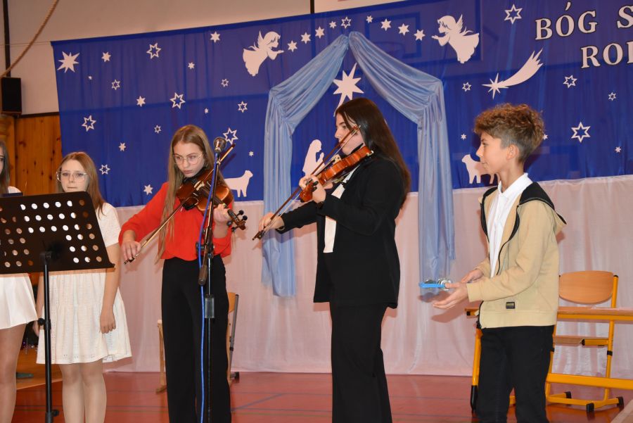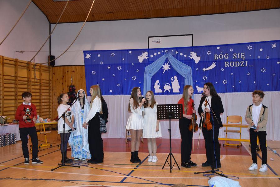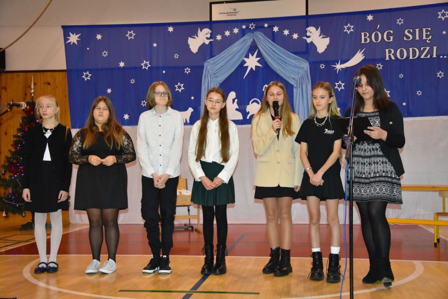 Za kilka dni w każdym z naszych domów zasiądziemy do wigilijnego stołu, by podzielić się opłatkiem, skosztować przepysznych dwunastu potraw, spędzić czas w gronie najbliższych i najbardziej kochanych osób. Niedługo potem nasz parafialny kościół zabrzmi na Pasterce potężnym śpiewam najpiękniejszych polskich kolęd... Nim jednak to nastąpi, przedszkolaki, uczniowie, nauczyciele, pracownicy szkoły oraz rodzice spotkali się w piątek 20 grudnia 2024 r. na szkolnej sali gimnastycznej, by poczuć nastrój nadchodzących świąt podczas słuchania wierszy i współczesnych kolęd i pastorałek, podzielić się opłatkiem z kolegami z klasy oraz zasiąść do szkolnej wigilii.