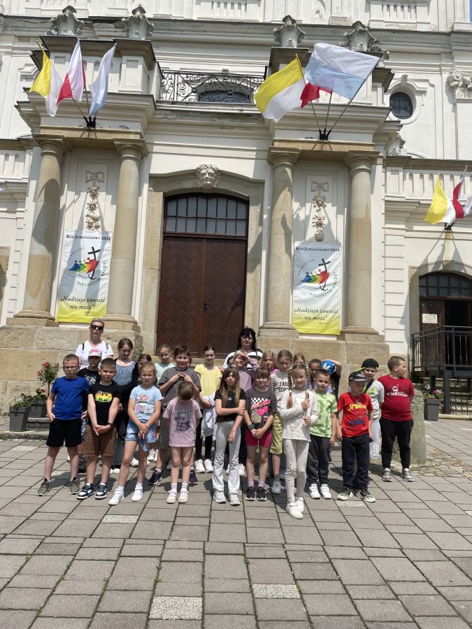 W piękny wiosenny dzień 10 czerwca 2025 r. klasy I, II i III wraz z wychowawczyniami paniami: Lucyną Kolka, Dorotą Piechnik i Katarzyną Bereżańską udały się na wycieczkę autokarową do Bóbrki i Dukli. Najpierw zatrzymaliśmy się w Bóbrce, gdzie zwiedziliśmy piękne Muzeum Przemysłu Naftowego i Gazownictwa. Przenieśliśmy się do czasów, w których żył i pracował Ignacy Łukasiewicz - wynalazca lampy naftowej i farmaceuta. Spacerując alejkami, podziwialiśmy unikatowe urządzenia związane z przemysłem naftowym, rafineryjnym i gazowniczym. We wnętrzach budynków można było powspominać czasy, kiedy na kopalni pracował jeszcze sam Ignacy Łukasiewicz. A to wszystko dzięki nowoczesnym ekspozycjom multimedialnym. Następnie pojechaliśmy do Dukli. Nawiedziliśmy Sanktuarium Ojców Bernardynów i pomodliliśmy się przy relikwiach św. Jana. Kolejnym punktem naszej wycieczki było jeszcze jedno miejsce związane z kultem św. Jana, a mianowicie kapliczka, gdzie znajduje się źródełko, z którego wierni czerpią wodę, przypisując jej właściwości lecznicze. Jest to miejsce związane z pustelniczym okresem życia św. Jana z Dukli. Tam też odpoczęliśmy, kupując pamiątki, a właściciel kramów poczęstował nas cukrową watą. Ostatnim punktem naszej wycieczki były lody, na które zatrzymaliśmy się w Besku. Zmęczeni, ale pełni wrażeń, wróciliśmy do Średniej Wsi.