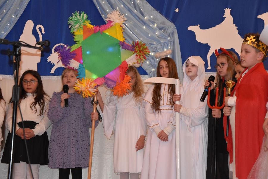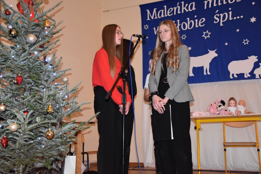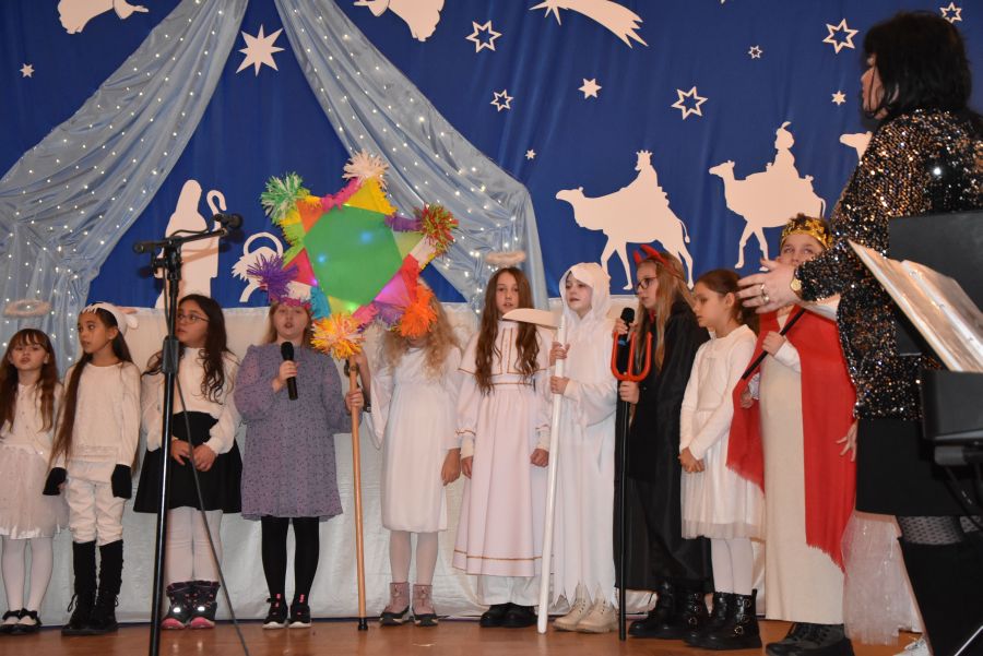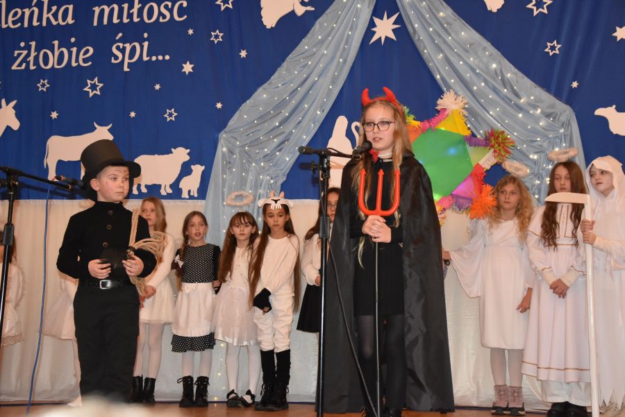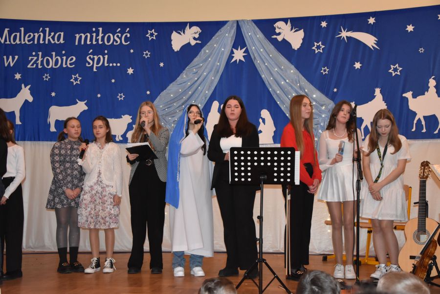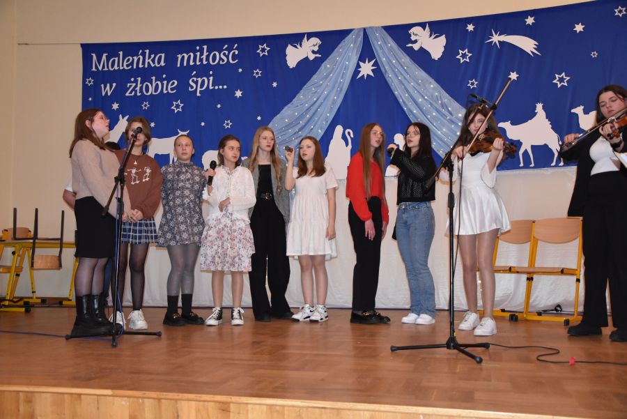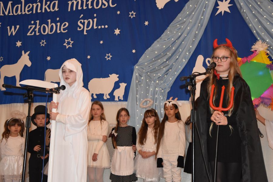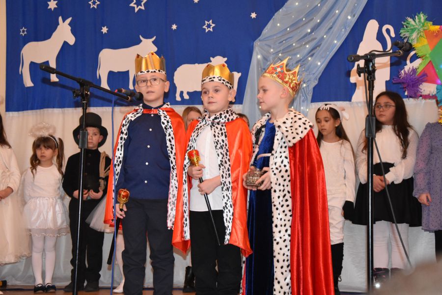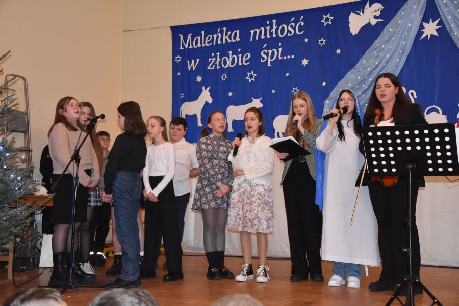 Wieczór ten rozpoczął się o godzinie 16:00 występem dzieci z przedszkola, które zaprezentowały taniec aniołków do kolędy "Świeć, gwiazdeczko, świeć". Następnie z gwiazdą i kolędą "Wśród nocnej ciszy" na scenę wkroczyli uczniowie klas I - III jako kolędnicy, którzy chodzą od domu do domu i życzą mieszkańcom szczęścia i wszelkiej pomyślności. Był turoń, diabełek, aniołki, śmierć, koza, Król Herod, kominiarz, pastuszkowie, bocian oraz Józef i Maryja z Dzieciątkiem, a także Trzej Królowie. Uczniowie profesjonalnie odegrali swoje role, prezentując historię Bożego Narodzenia. Porwali oni też publiczność pięknym wykonaniem współczesnych kolęd i pastorałek. Po nich sceną zawładnęli uczniowie klas IV - VIII, prezentując skłaniające do refleksji scenki z codziennego życia oraz wzruszając i zachwycając doskonałymi wykonaniami współczesnych piosenek bożonarodzeniowych.