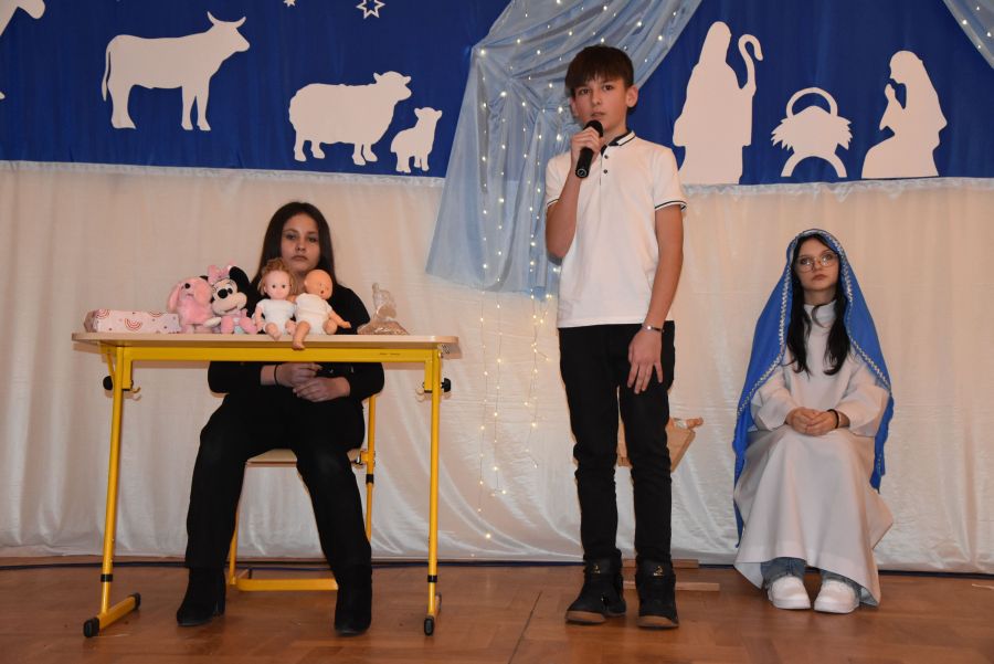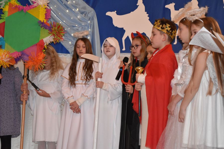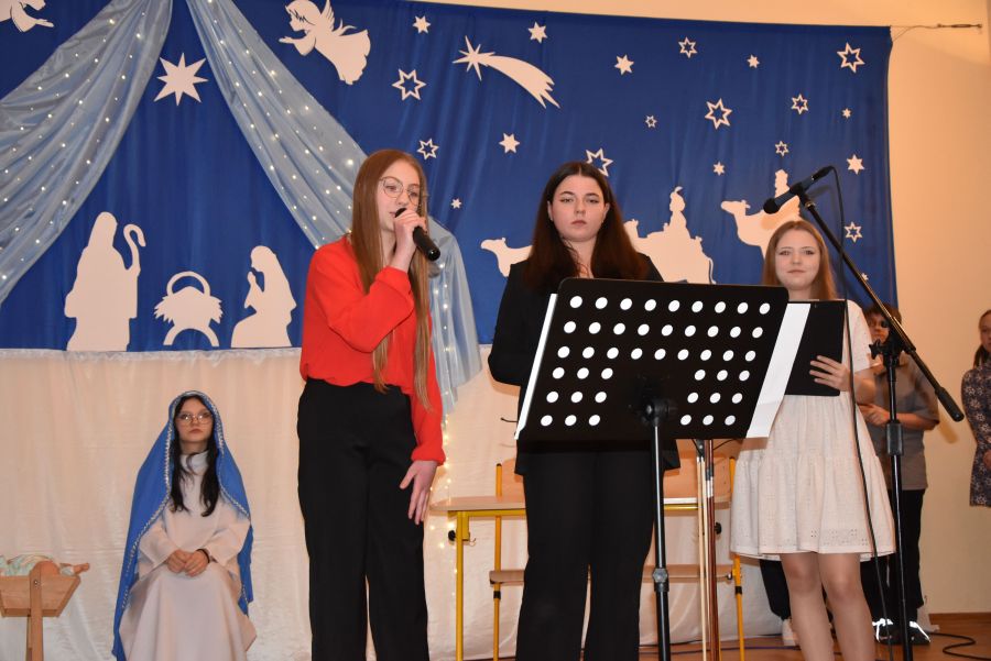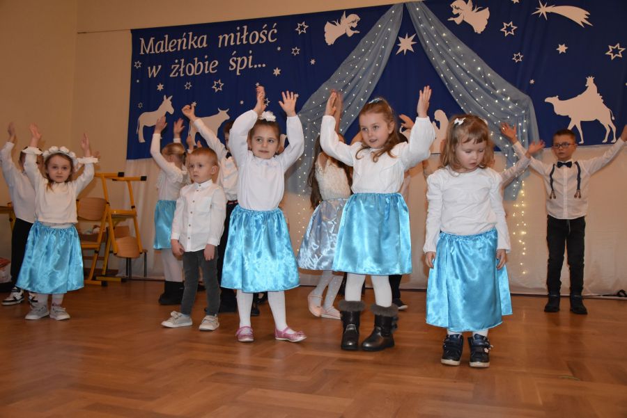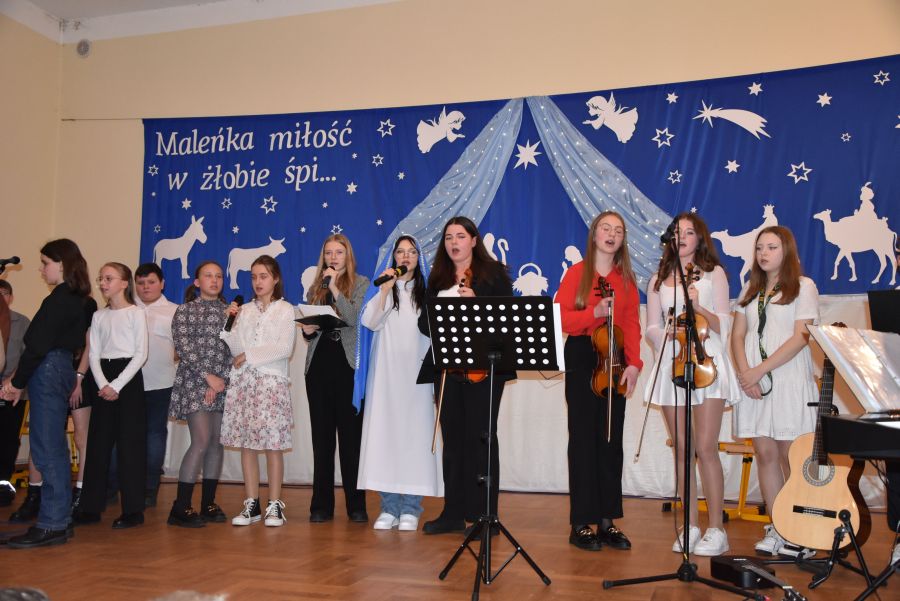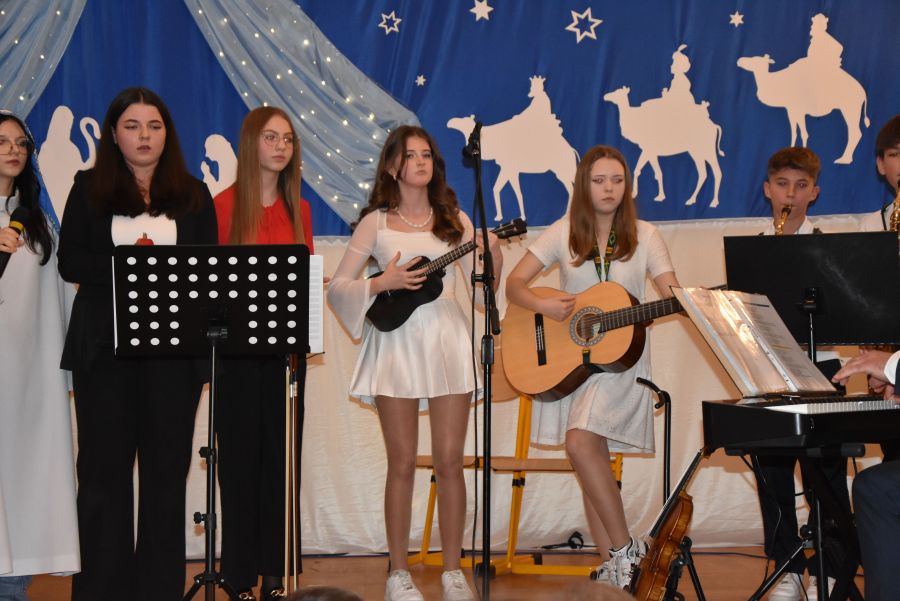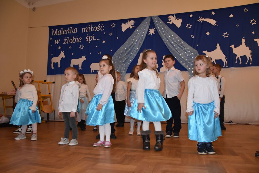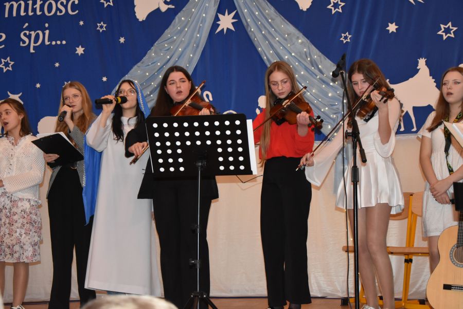Wieczór ten rozpoczął się o godzinie 16:00 występem dzieci z przedszkola, które zaprezentowały taniec aniołków do kolędy "Świeć, gwiazdeczko, świeć". Następnie z gwiazdą i kolędą "Wśród nocnej ciszy" na scenę wkroczyli uczniowie klas I - III jako kolędnicy, którzy chodzą od domu do domu i życzą mieszkańcom szczęścia i wszelkiej pomyślności. Był turoń, diabełek, aniołki, śmierć, koza, Król Herod, kominiarz, pastuszkowie, bocian oraz Józef i Maryja z Dzieciątkiem, a także Trzej Królowie. Uczniowie profesjonalnie odegrali swoje role, prezentując historię Bożego Narodzenia. Porwali oni też publiczność pięknym wykonaniem współczesnych kolęd i pastorałek. Po nich sceną zawładnęli uczniowie klas IV - VIII, prezentując skłaniające do refleksji scenki z codziennego życia oraz wzruszając i zachwycając doskonałymi wykonaniami współczesnych piosenek bożonarodzeniowych.