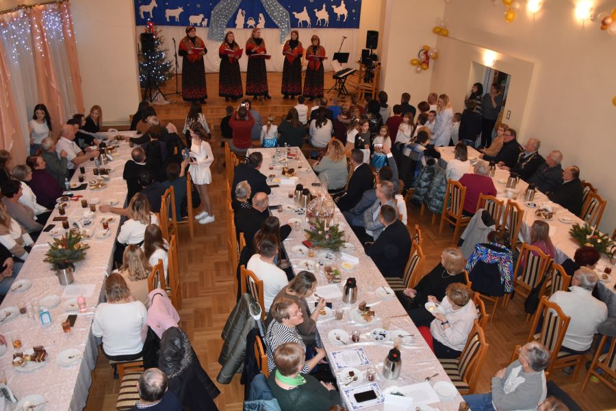 W trakcie spotkania rodzice częstowali gości herbatą, kawą i ciastkami, podano też barszcz i paszteciki. Na koniec w sali zabrzmiały znane tradycyjne kolędy, do których wspólnego śpiewania młodzież ze szkoły podstawowej zaprosiła wszystkich zebranych. Śpiewom akompaniował pan Piotr - nasz muzyk. Wieczór kolędowy dostarczył wszystkim wielu niezapomnianych wrażeń.