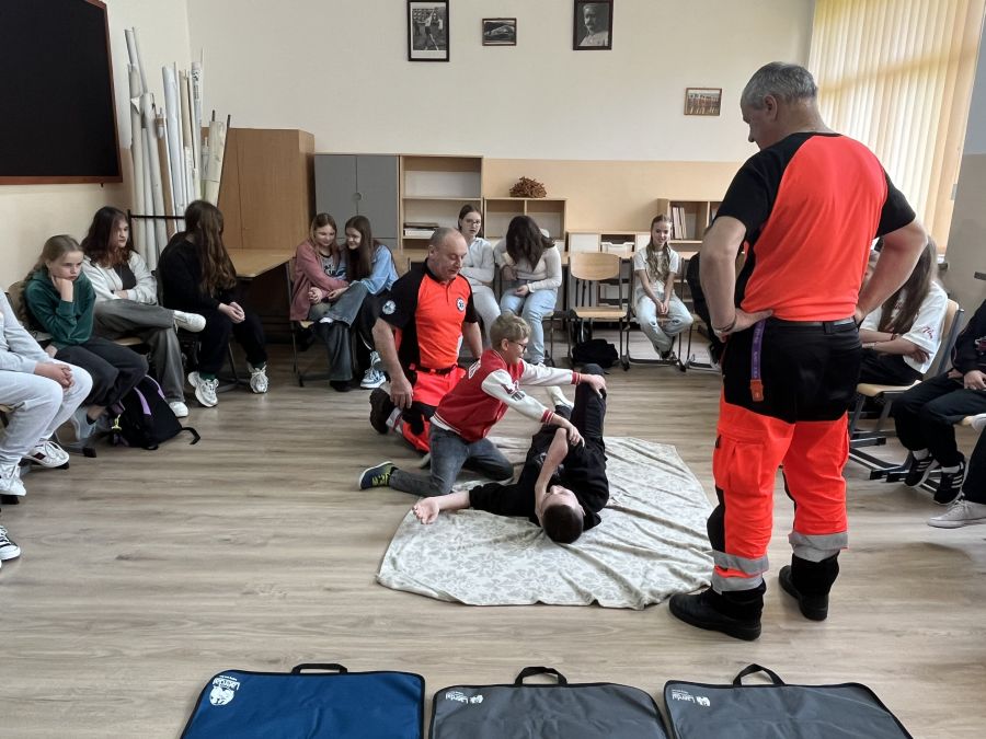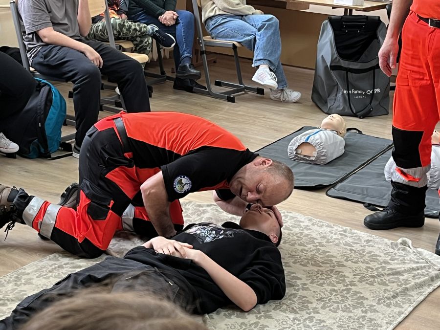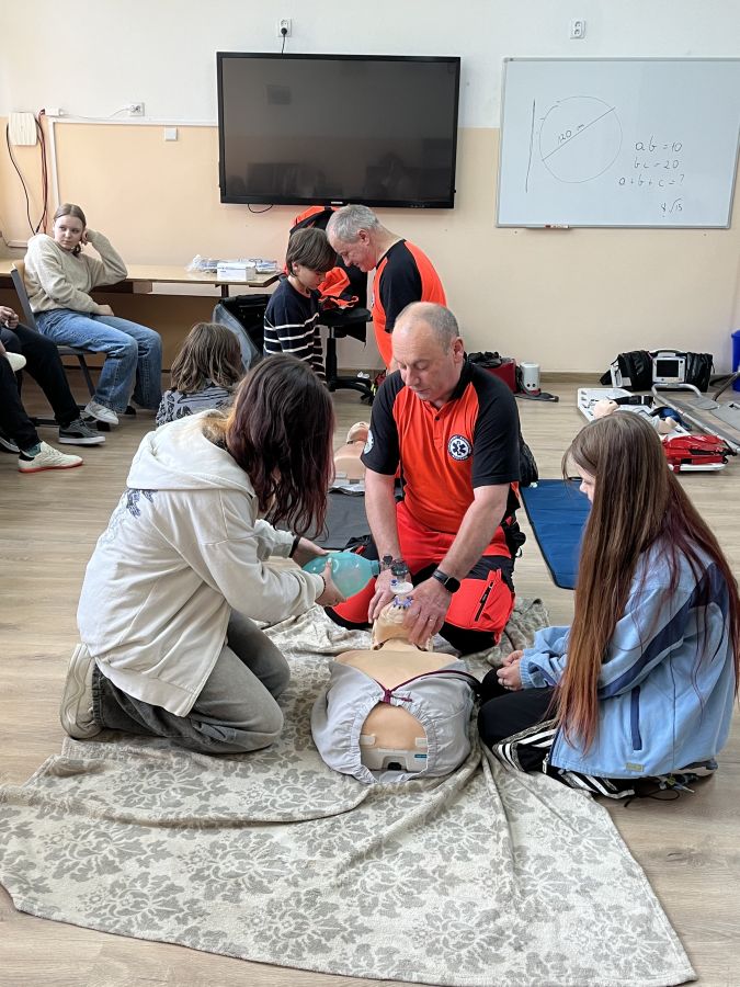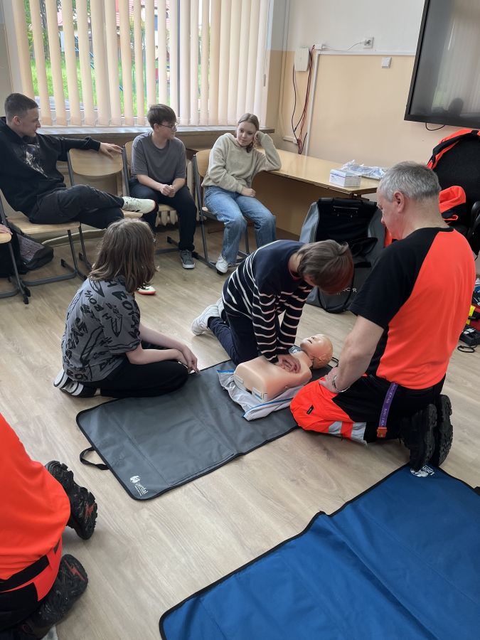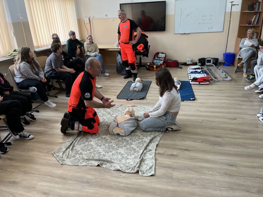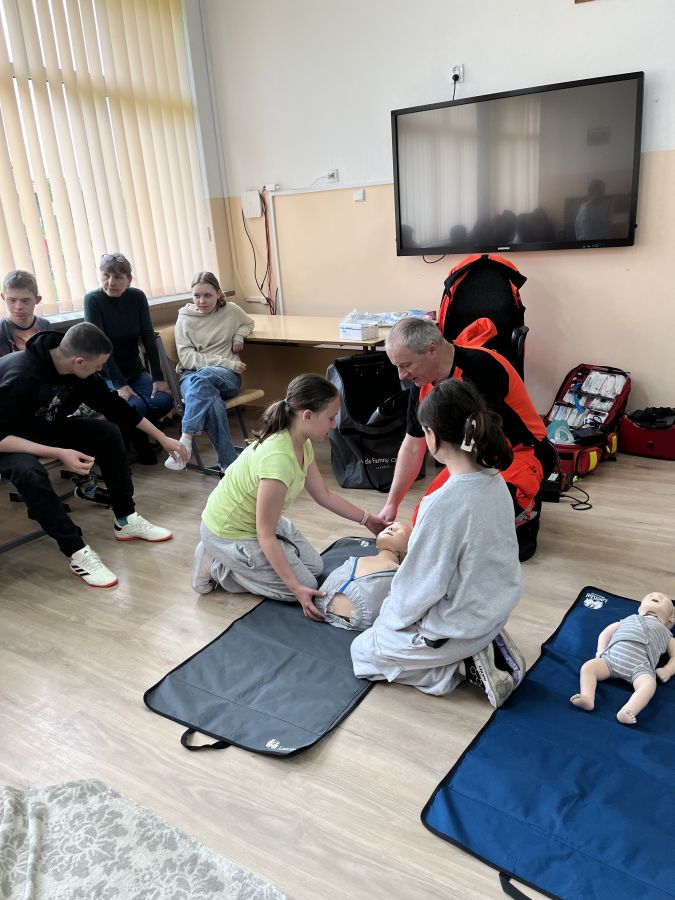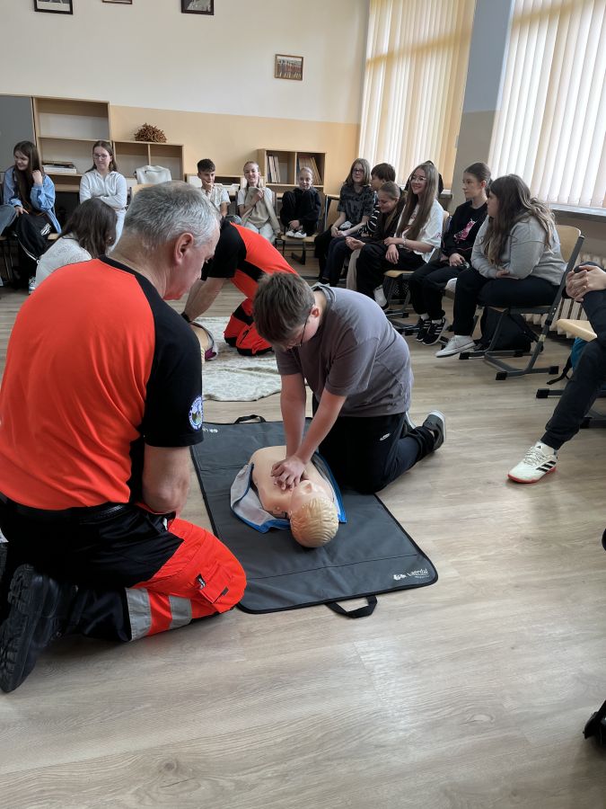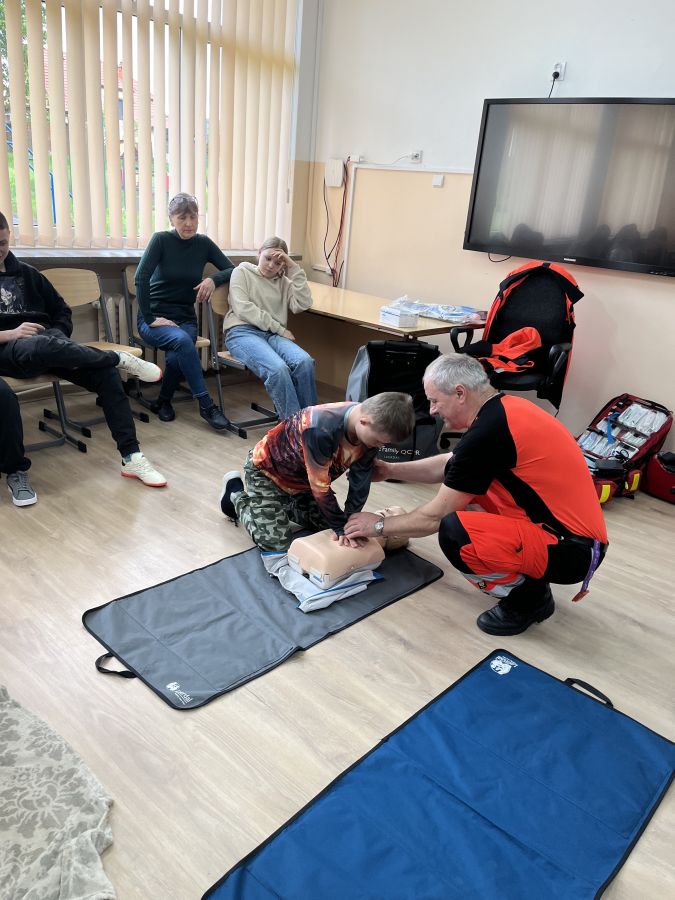 20 maja 2025 r. klasy IV - VIII odwiedzili ratownicy medyczni pracujący w Bieszczadzkim Pogotowiu Ratunkowym z siedzibą w Sanoku. Ratownicy podczas spotkania pokazali uczniom specjalistyczny sprzęt, którym posługują się na co dzień w karetce i opowiedzieli o swojej pracy. Poinstruowali, w jaki sposób należy wezwać karetkę pogotowia, jak rozmawiać z dyspozytorem. Udzielili szczegółowych wyjaśnień, jak należy przeprowadzać resuscytację krążeniowo-oddechową. Każdy z uczestników spotkania mógł pod okiem naszych gości przećwiczyć RKO na fantomie. Kolejno nauczyliśmy się układać pacjenta w pozycji bocznej bezpiecznej. Było to niezwykle ważne spotkanie, gdyż wiemy już, jak udzielić pierwszej pomocy przedmedycznej. Jeszcze raz serdeczne podziękowania kierujemy do Ratowników Medycznych Bieszczadzkiego Pogotowia Ratunkowego SPZOZ w Sanoku.