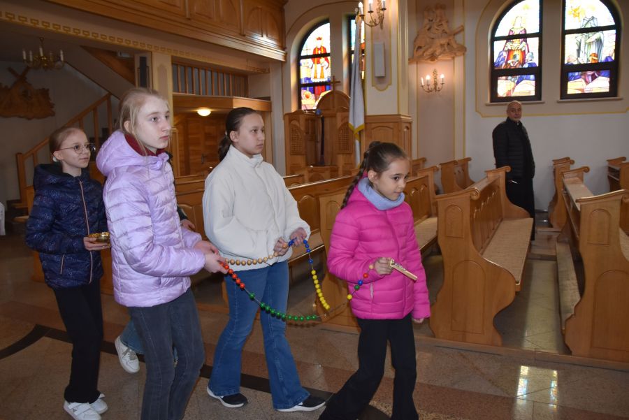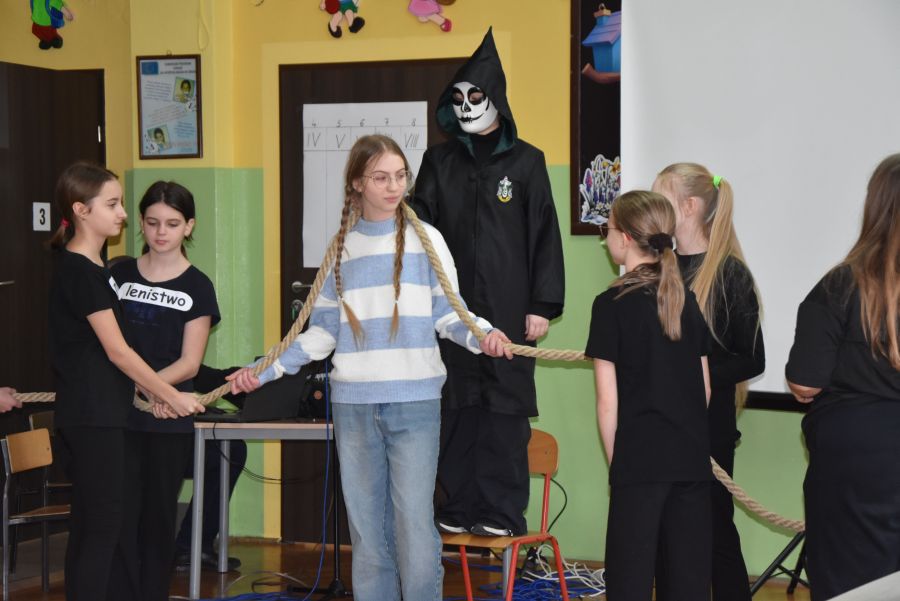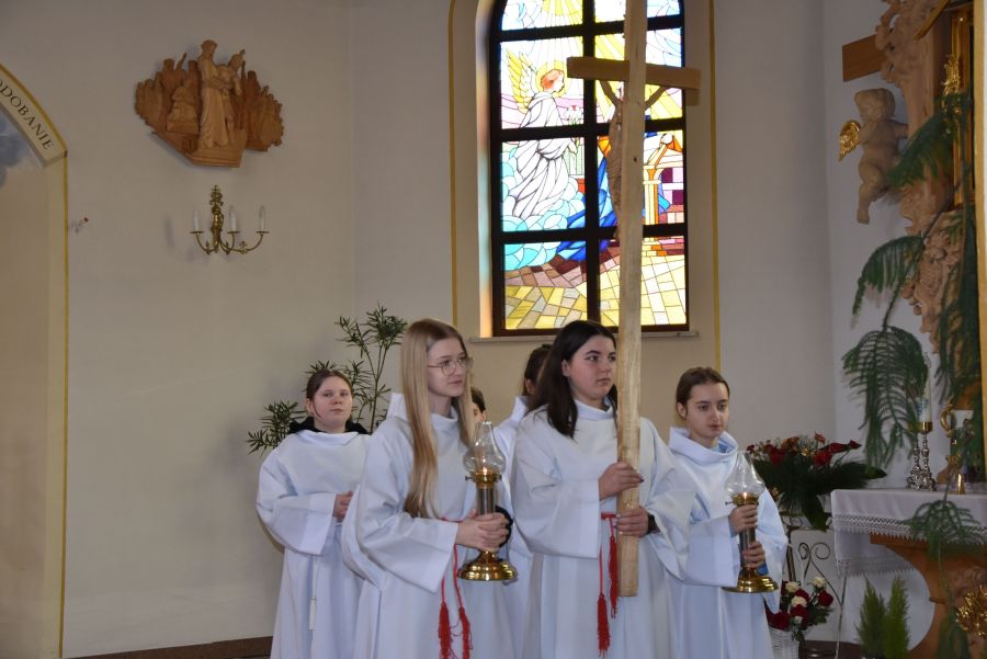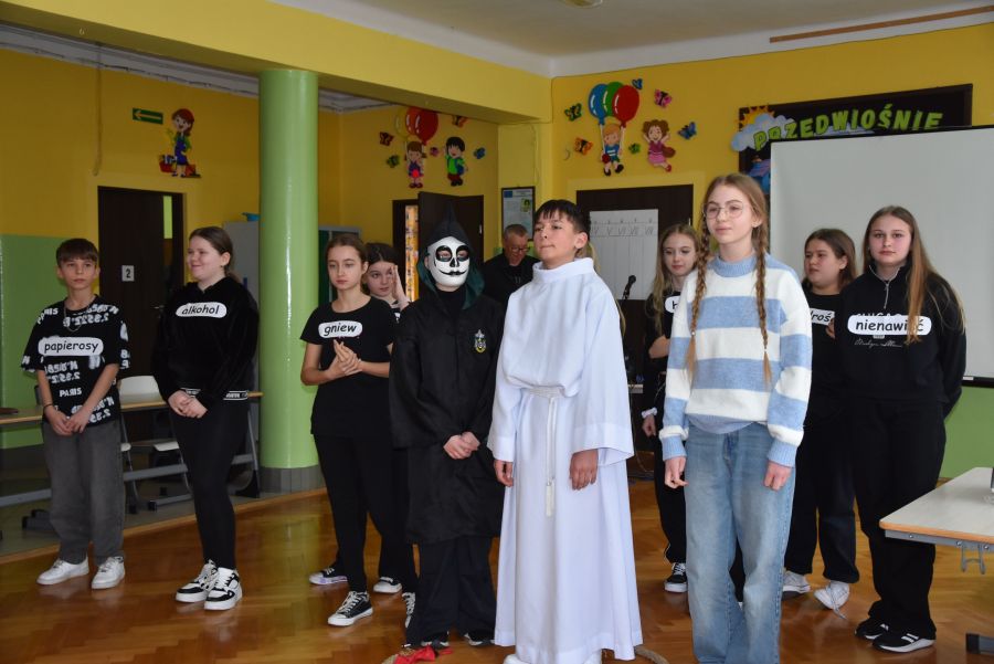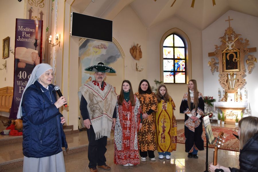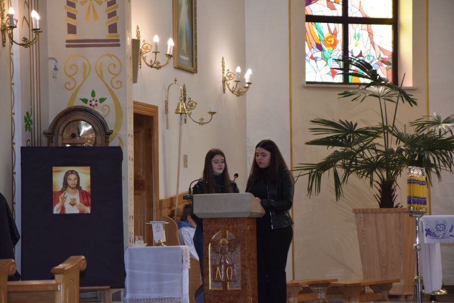 W dniach 12 - 13 marca 2025 r. społeczność naszej szkoły uczestniczyła w rekolekcjach wielkopostnych, które prowadził katecheta ksiądz Grzegorz Łach przy współudziale siostry Magdaleny ze zgromadzenia Sióstr Misjonarek św. Piotra Klawera. W pierwszym dniu siostra opowiedziała zgromadzonym o warunkach, w jakich mieszkają ludzie w krajach Afryki i posłudze, jaką pełnią wśród nich misjonarze. Dzięki piosenkom, przywiezionym eksponatom z krośnieńskiego muzeum misyjnego, spotkanie na długo zapadło nam w pamięci. Najważniejszym punktem pierwszego dnia była Msza Święta, której oprawę liturgiczną przygotowały uczennice naszej wspólnoty. Drugi dzień rozpoczęliśmy w szkole, uczestnicząc w quizie biblijnym poświęconym Biblii, życiu Pana Jezusa i wydarzeniom roku liturgicznego. W rywalizacji brali udział najlepsi przedstawiciele każdej z klas. Odpowiedzi udzielane w trakcie quizu świadczyły o wielkiej znajomości Pisma Świętego. Nasze rekolekcje zakończyliśmy w kościele uczestnictwem w Drodze Krzyżowej, której rozważania były oparte o wydarzenia z codziennego życia młodych ludzi. Na zakończenie podziękowaliśmy bardzo serdecznie za prowadzenie rekolekcji siostrze Magdalenie i księdzu Grzegorzowi.