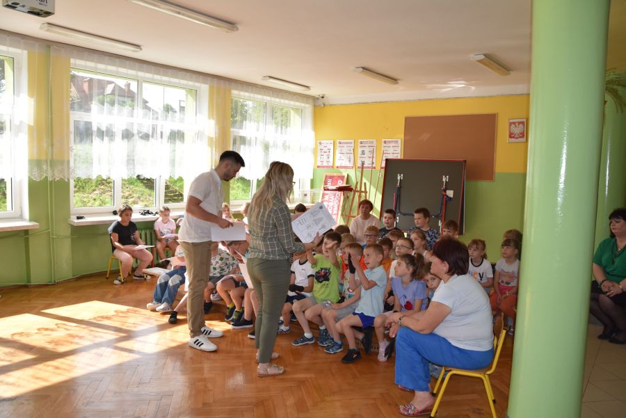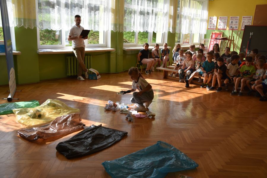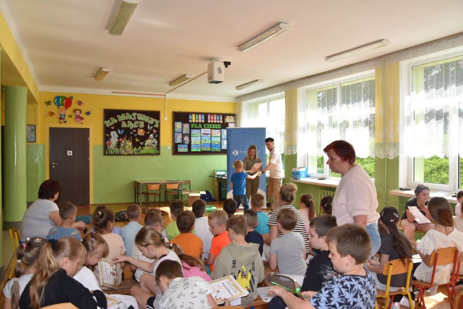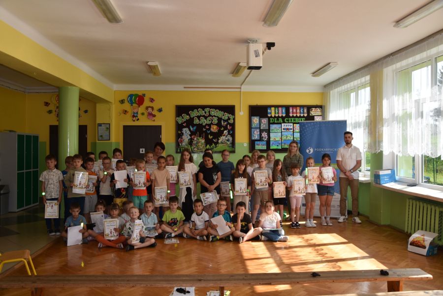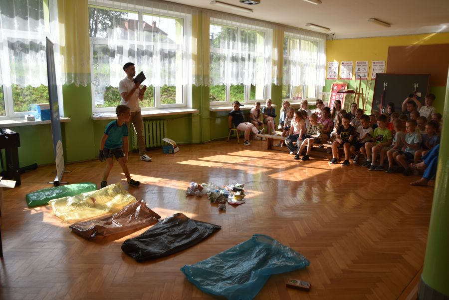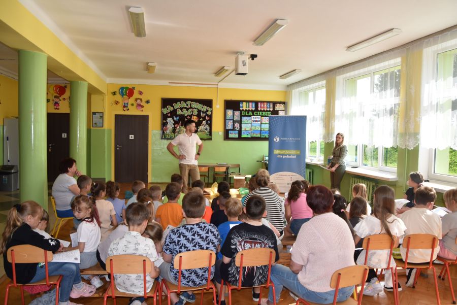 Dnia 5 czerwca 2025 r. w naszej szkole odbyły się warsztaty LIFE - "Podkarpackie - żyj i oddychaj". Udział w nich wzięły klasy edukacji wczesnoszkolnej oraz przedszkolna zerówka. Warsztaty dotyczyły walki ze smogiem oraz zachowań sprzyjających dbałości o czyste powietrze. Jednym z tematów były praktyczne zajęcia segregacji śmieci, rozpoznawanie leśnych zwierząt i ich tropów. Dzieci miały między innymi możliwość potrenować sobie segregację śmieci czy rozpoznać zwierzę leśne po tropach. Na zakończenie dzieci otrzymały dyplomy i drobne upominki. Dziękujemy za wspaniałe warsztaty.