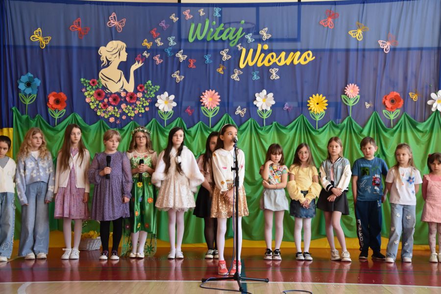 W dniu pierwszego dnia wiosny, 21 marca 2025 r., uczniowie klas I - III naszej szkoły zaprezentowali wyjątkową inscenizację, w której pożegnali zimę i radośnie przywitali nadchodzącą wiosnę. Przedstawienie pełne było wesołych piosenek i wierszyków, które symbolizowały zmianę pór roku. Dzieci z zaangażowaniem odegrały swoje role, oddając atmosferę wiosennego przebudzenia. Wspólnie z widownią pożegnaliśmy zimę, a w jej miejsce przywitaliśmy radosną, pełną życia wiosnę. To wydarzenie było pełne magii, radości i nadziei na nadchodzące cieplejsze dni. Dziękujemy naszym Paniom za przygotowanie dzieci, a uczniom za ich kreatywność i zaangażowanie, które sprawiły, że ta inscenizacja była niezapomnianym przeżyciem.