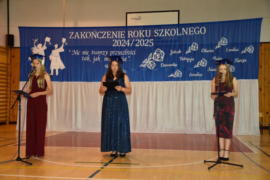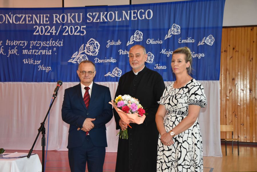W piątek 27 czerwca 2025 r. w Szkole Podstawowej w Średniej Wsi odbyło się uroczyste zakończenie roku szkolnego 2024/2025. Najpierw uczniowie, rodzice i nauczyciele spotkali się w nowym kościele parafialnym, by udziałem we mszy św. podziękować za cały rok pracy i nauki oraz prosić o wspaniałe wakacje. Następnie wszyscy udali się do szkoły, by uczestniczyć w akademii na sali gimnastycznej. W tym roku nagrodzeni zostali następujący uczniowie: