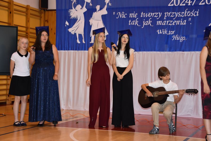 Po części oficjalnej Pan Dyrektor zaprosił wszystkich uczestników uroczystości na występy artystyczne uczniów klasy VIII, a potem swoich starszych kolegów pożegnali uczniowie klasy VII. Po zakończeniu akademii wszyscy udali się do klas na ostatnie przed wakacjami spotkanie ze swoimi wychowawcami.